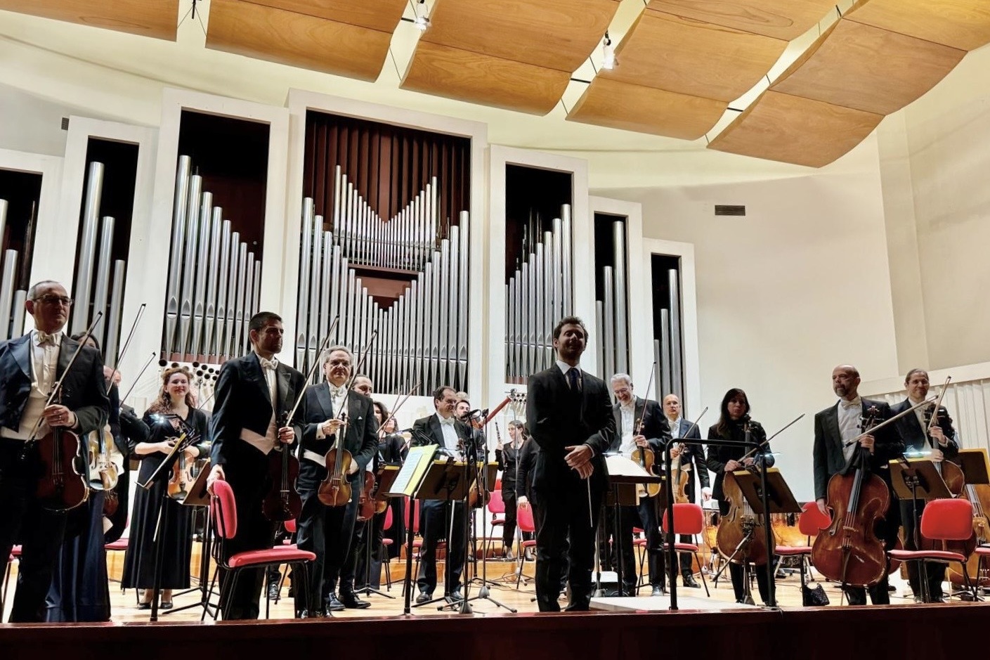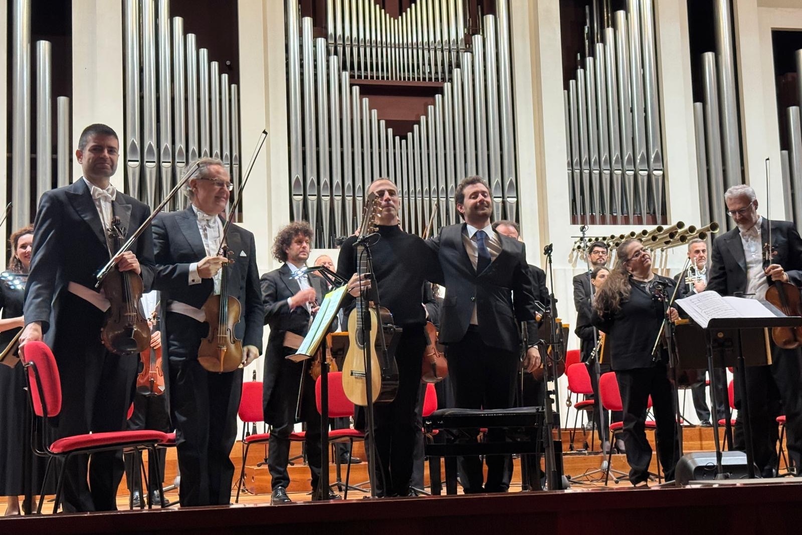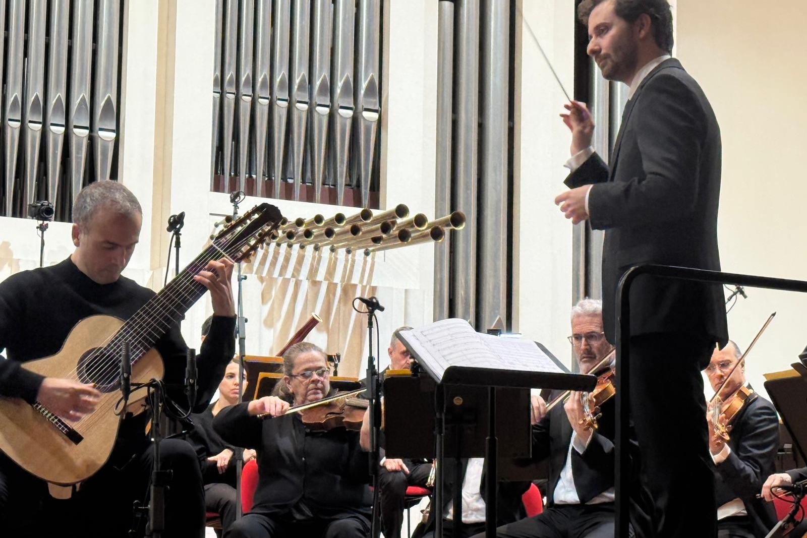 Incastonata tra due gemme del repertorio, come la Pavane di Fauré e la Sinfonia n. 1 di Beethoven, sarà eseguita in prima nazionale Lungo il Po, una nuova composizione per orchestra da camera e chitarra a 10 corde. Scritto dallo stesso Giacomo Susani, il brano è stato a lui commissionato dall’Università di Colorado Boulder ed è in assoluto la prima composizione per chitarra a 10 corde e orchestra mai composta; è stata eseguita in world première a Boulder (Colorado) nel dicembre del 2024 con la Boulder Chamber Orchestra e gli stessi Nicolò Spera e Giacomo Susani alla direzione.